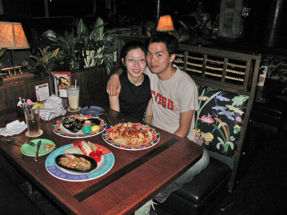< previousnext >Last dinner at Hawaii. There's lobster and shrimps, lobster spaghetti and probably lobster something else too.