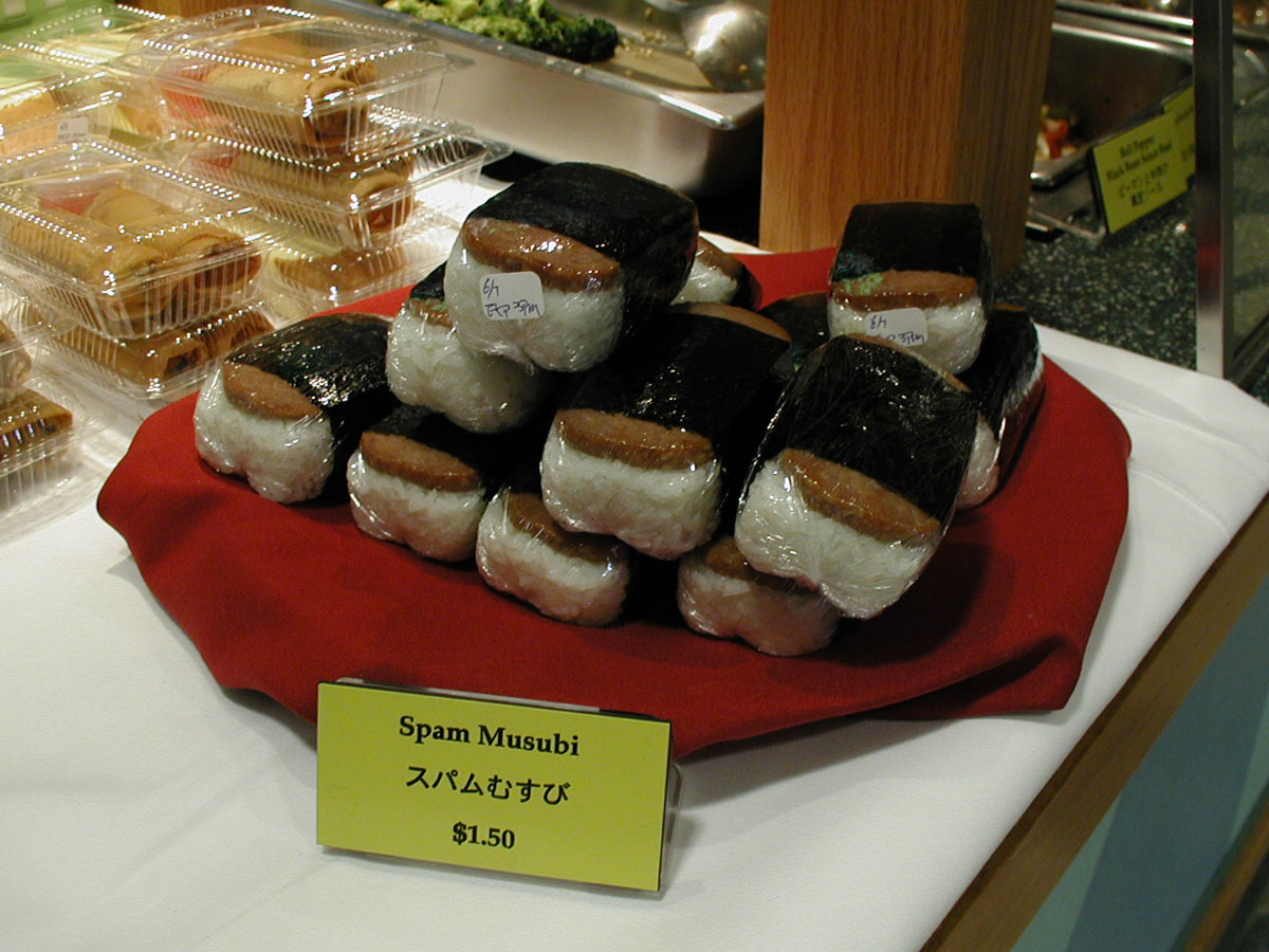 Take Spam. Spam goes with everything and goes in everything - even musubi. There is a "plate lunch" - Katsu chicken, rice and macaroni salad - which Jackie has grown somewhat fond of.