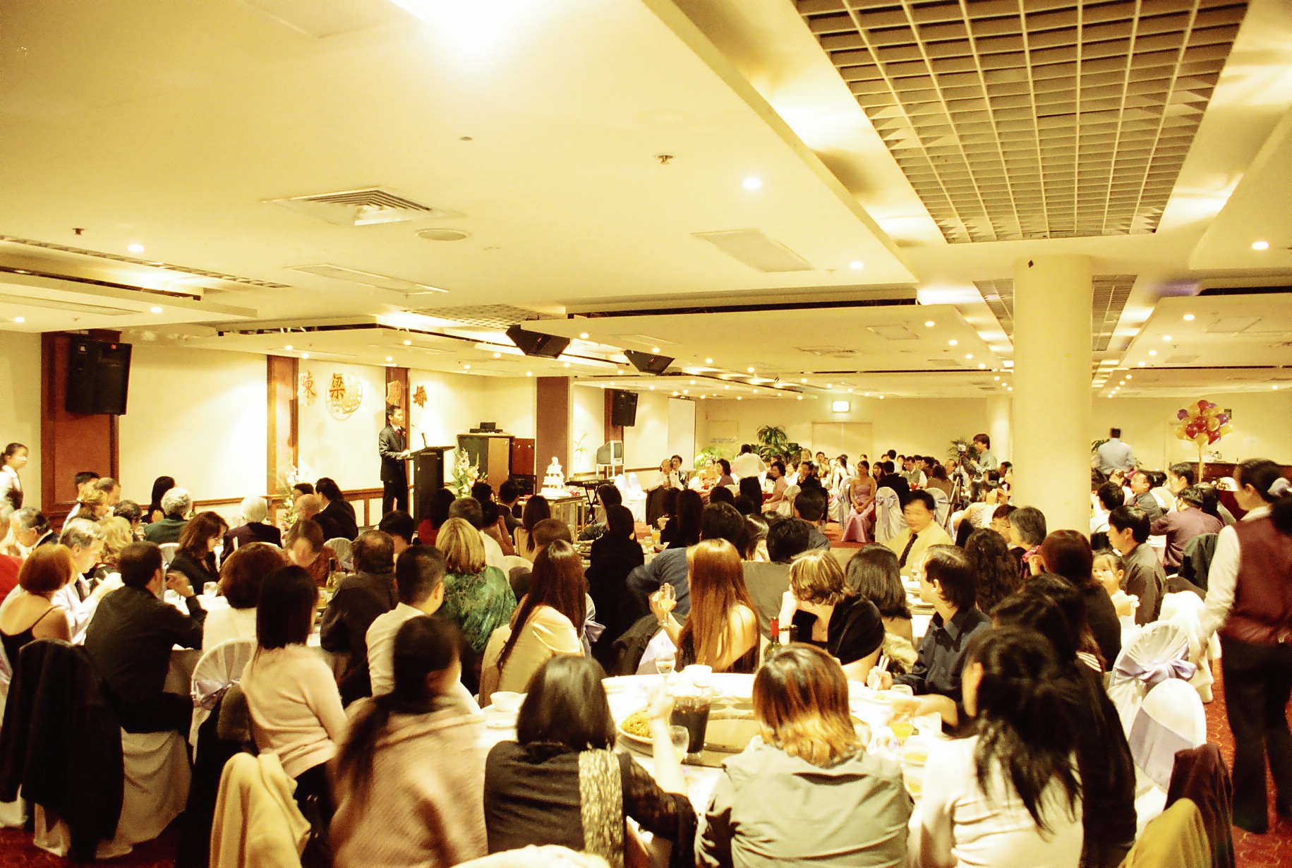 Amid the clatter of shuffling waiters with no sense of the occasion or timing, the guests listen intently as the groom professes to be the luckiest person in the world.