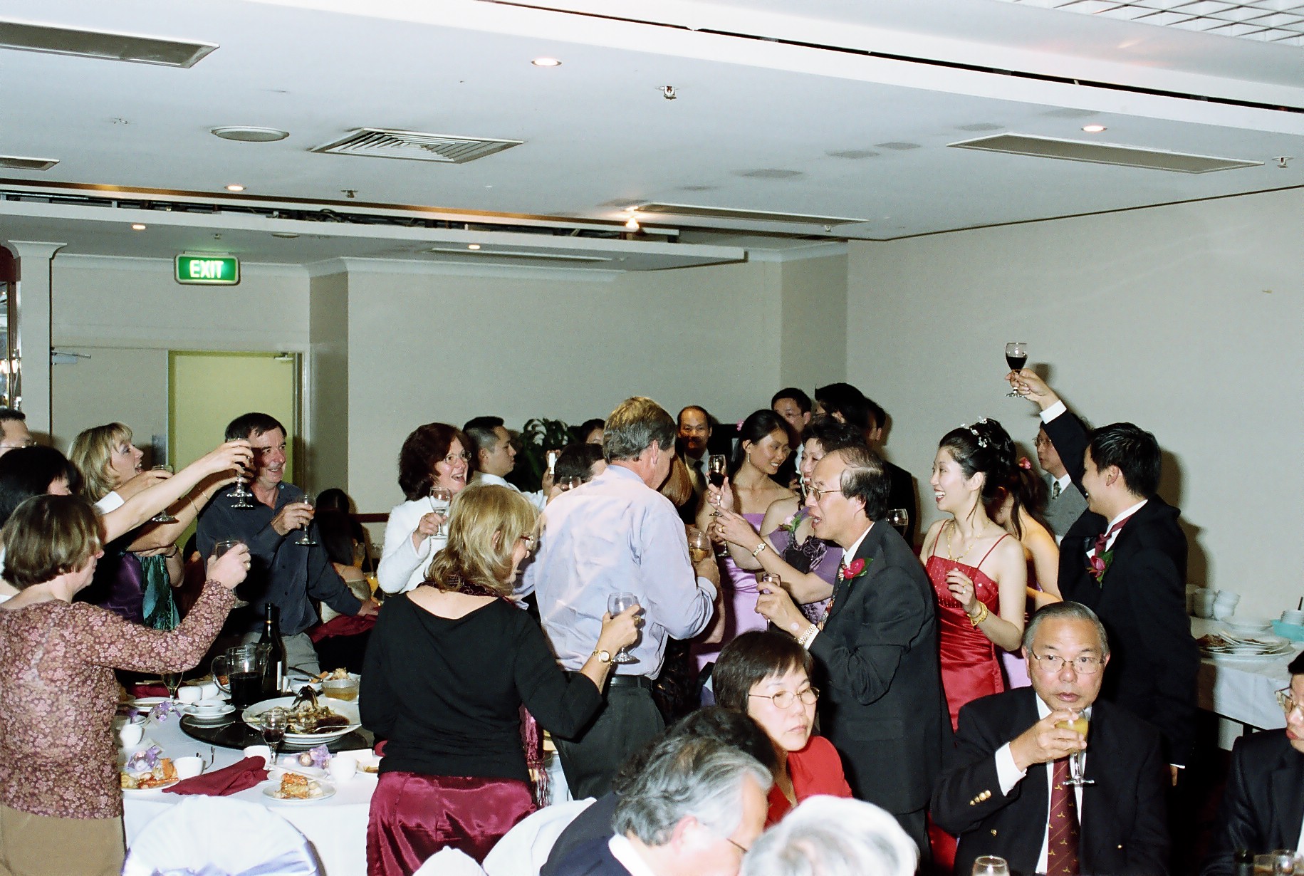 < previousnext >This whole reception is a heady mix of Chinese and Australian traditions and the couple's own. Here the Australian contingent gets into the spirit of things.