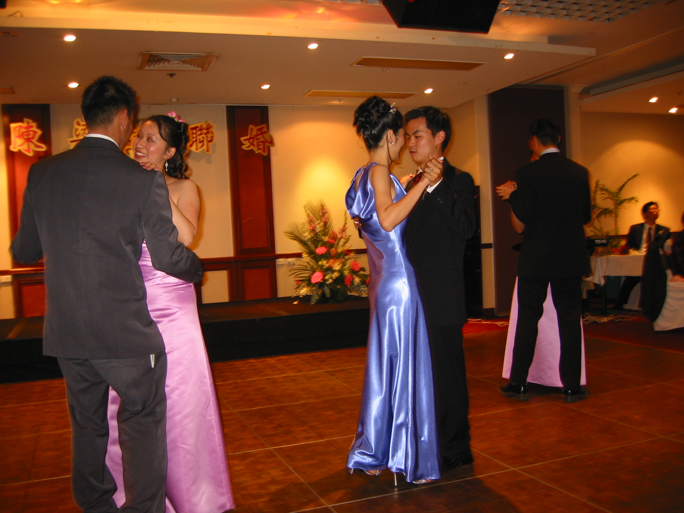Instead of the father/bride dance the couple has chosen to invite the bridesmaids onto the floor with their boyfriends. Mandy and Sze are on the left, Ian and Mimi are on the right.