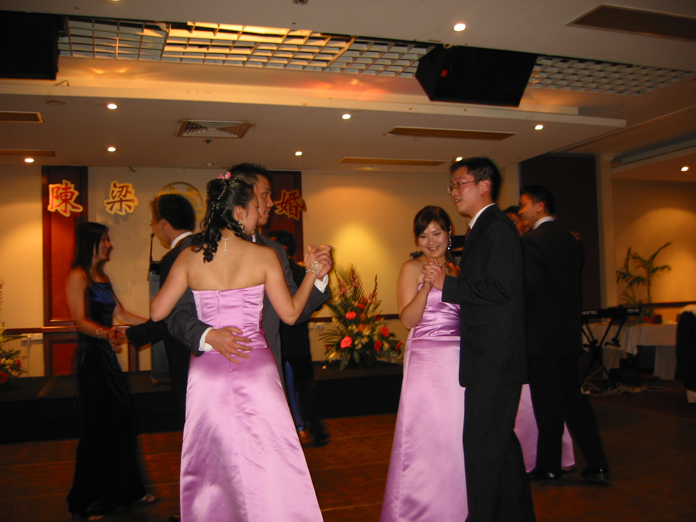 < previousnext >The best men take to the floor to bust a move. On the left are Derek and Michelle (in navy blue dress) joining Yeeng and Salina.